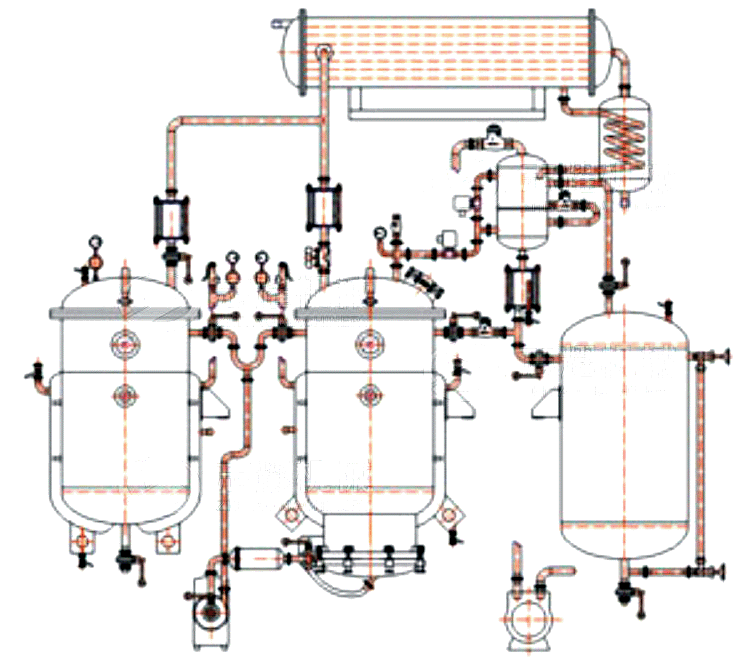 凝成冷凝液,回落到提取罐內(nèi)。所有由溶劑產(chǎn)生的蒸汽,都通過熱交換成為冷凝液回到提取罐內(nèi),二次蒸汽在過程中得到充分利用,形成新