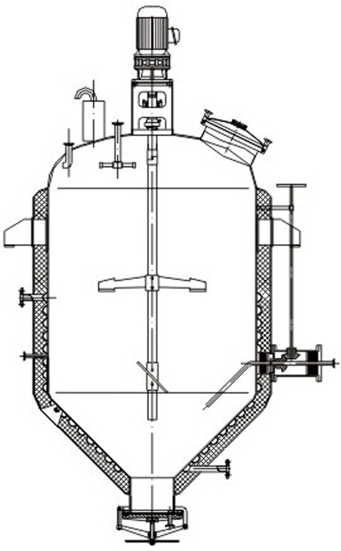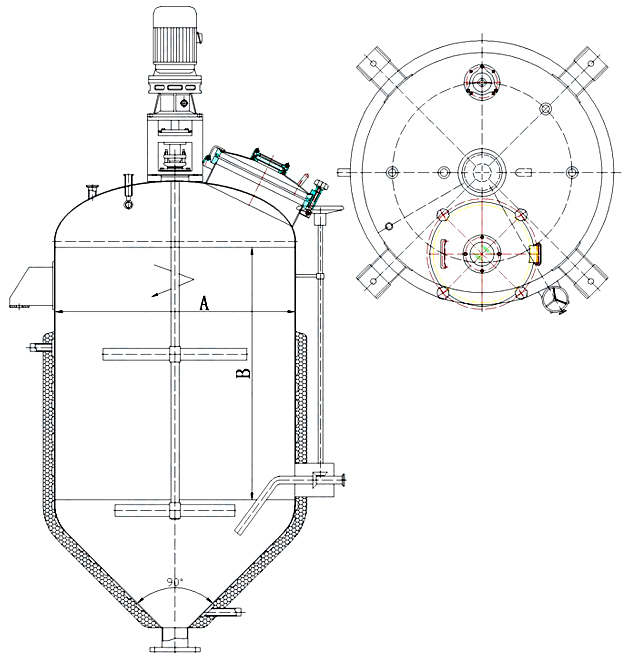 主要由附夾套的橢圓封頭、錐底形的筒體、內裝三葉式攪拌以及特殊的微調旋出液管等組裝而成。